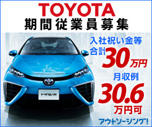 18歳~トヨタ期間工(平均年収450万/寮費・水道光熱費無料)契約期間2年11ヶ月